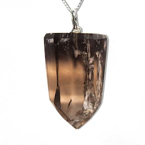 Colar de Quartzo Fumê com Pino em Prata 950 – Energia, Elegância e Proteção Eleve sua energia e estilo com este Colar de Quartzo Fumê Natural, montado com pino em Prata 950. Com uma micro pontinha lapidada artesanalmente, esta joia é perfeita para quem busca equilíbrio, proteção e sofisticação no dia a dia. O que você receberá: 1 Pingente de Pedra Natural – Pronto para uso e energizado. Detalhes do Pingente:\nPedra: Quartzo Fumê Natural\nFormato: Pontinha\nCor: Marrom esfumaçado\nClaridade: Brilhoso e semi-transparente\nDimensões: Aproximadamente 30 a 40 mm\nPeso: 10 a 20g\nMontagem: Pino em Prata 950\nNota: Por ser uma pedra natural, podem ocorrer variações na tonalidade, grafismos e pequenas inclusões, características únicas de minerais autênticos. Adquira agora o seu e conecte-se à energia do Quartzo Fumê! Marca: Não Informado