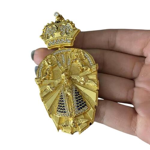 Pingente Santa Com Anjos Oval - Banhado a Ouro 18k Detalhes do Produto: Material: ligas metálicas de alta qualidade, especialmente tratadas para fixação e absorção do ouro, com acabamento em verniz protetor. Aparência: visual idêntico ao ouro maciço. Produção: artesanal, com atenção meticulosa aos detalhes. Banho: 10 camadas espessas de ouro 18k, finalizadas com verniz antialérgico . Elos: soldados varia conforme o modelo . Pedras: zircônias brilhantes cravejadas quando aplicável . Tamanhos Disponíveis: Cordões Masculinos: 70cm padrão e 60cm sob consulta/Pedido Via Chat . Cordões Femininos: 50cm padrão e 45cm sob consulta/Pedido Via Chat . Pulseiras: 21cm padrão ; tamanhos de 18cm a 23cm sob consulta/Pedido Via Chat. Pingentes: conforme imagens; consulte para mais detalhes via chat. Espessuras Recomendadas para Cordões / Pingentes: P: 1mm a 4mm M: 4mm a 8mm G: 6mm a 13mm Gg: 12mm a 18mm Incluso na Compra: Saquinho de organza para armazenamento seguro. Caixa elegante, perfeita para presente. Cupom de desconto para a próxima compra. Flyer com outros produtos da coleção. Carta de agradecimento personalizada. Adesivo da marca ToJoia18k. Informações Adicionais: : 6 meses termos acompanham o produto . Devolução: 7 dias para devolução sem questionamentos. Envio: despacho em até 24 horas úteis após confirmação do pagamento. Cuidados com a Peça: Evite contato com produtos químicos; aguarde o perfume secar antes de usar. Evite contato com shampoo, condicionadores e suor excessivo. Armazene em local seco, preferencialmente no saquinho de organza fornecido. Uso no mar e piscina é permitido; lave com água corrente e sabão neutro após. Por que Escolher a ToJoia18k Semi-joias luxuosas que combinam estilo, qualidade e sofisticação. Banho espesso de ouro 18k, garantindo brilho duradouro e acabamento impecável. Design exclusivo e produção artesanal, perfeitos para qualquer ocasião. Materiais premium que asseguram durabilidade. Ao escolher uma semi-joia ToJoia18k, você investe em qualidade, elegância e uma experiência única. Aguardamos sua compra Observação: pode ocorrer variação no fecho raramente . Imagens reais, sem edição. Qualquer dúvida, estamos à disposição para esclarecimentos. Marca: Não Informado