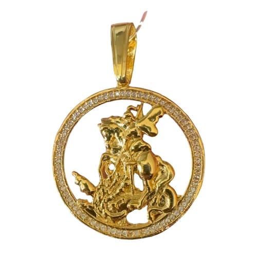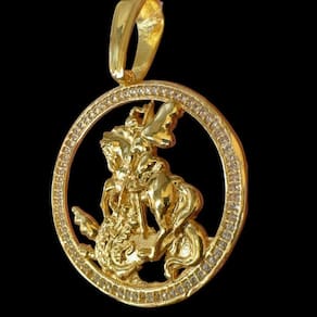 Pingente São Jorge Redondo - Banhado a ouro 18k Detalhes do Produto: Material: ligas metálicas de alta qualidade, especialmente tratadas para fixação e absorção do ouro, com acabamento em verniz protetor. Aparência: visual idêntico ao ouro maciço. Produção: artesanal, com atenção meticulosa aos detalhes. Banho: 10 camadas espessas de ouro 18k, finalizadas com verniz antialérgico . Elos: soldados varia conforme o modelo . Pedras: zircônias brilhantes cravejadas quando aplicável . Tamanhos Disponíveis: Pingentes: conforme imagens; consulte para mais detalhes via chat. Incluso na Compra: Saquinho de organza para armazenamento seguro. Caixa elegante, perfeita para presente. Cupom de desconto para a próxima compra. Flyer com outros produtos da coleção. Carta de agradecimento personalizada. Adesivo da marca ToJoia18k. Informações Adicionais: : 6 meses termos acompanham o produto . Devolução: 7 dias para devolução sem questionamentos. Envio: despacho em até 24 horas úteis após confirmação do pagamento. Cuidados com a Peça: Evite contato com produtos químicos; aguarde o perfume secar antes de usar. Evite contato com shampoo, condicionadores e suor excessivo. Armazene em local seco, preferencialmente no saquinho de organza fornecido. Uso no mar e piscina é permitido; lave com água corrente e sabão neutro após. Por que Escolher a ToJoia18k Semi-joias luxuosas que combinam estilo, qualidade e sofisticação. Banho espesso de ouro 18k, garantindo brilho duradouro e acabamento impecável. Design exclusivo e produção artesanal, perfeitos para qualquer ocasião. Materiais premium que asseguram durabilidade. Ao escolher uma semi-joia ToJoia18k, você investe em qualidade, elegância e uma experiência única. Aguardamos sua compra Qualquer dúvida, estamos à disposição para esclarecimentos. Marca: Tojoia18K