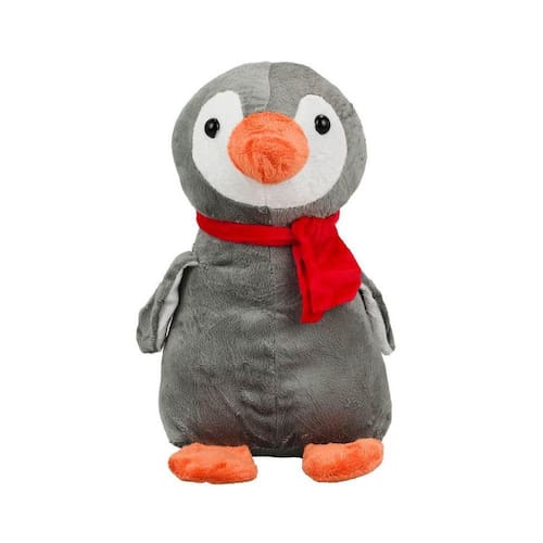 Com um visual encantador, este pinguim de pelúcia é cinza e usa um cachecol vermelho no pescoço. Ele é perfeito para decorar seu quarto ou presentear alguém especial.