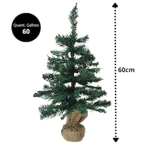 Pinheiro Decorativo de Mesa 60cm - Base Rústica em Linho Juta com 60 GalhoPinheiro De Mesa Rústico Base Linho Juta 60cm - Bela Flor