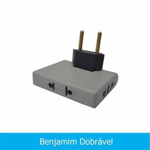 Pino Adaptador Benjamin T Articulado 3 Saídas 10a Trioplast Adaptador dobrável 10 Amperes 250V - Pino Latão Maciço Este adaptador pode ser em: -computadores -eletrodomésticos em Geral entre outros. Suporta o padrão novo de tomadas. Cor: Cinza e Preto A dos produtos é válida SOMENTE contra defeitos de fabricação. A não cobre defeitos ocasionados por mau uso, má instalação, quedas, ou danos causados por forças naturais. Marca: Não Informado