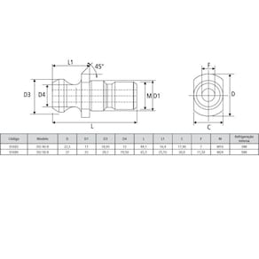 Os Pinos de Fixação são acessórios utilizados para a fixação dos Cones Modulares nos Centros de Usinagem.