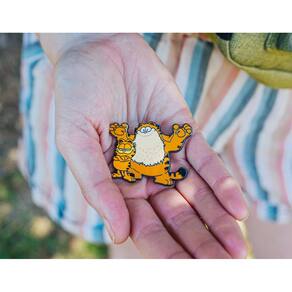 - COMO PAI, COMO FILHO: Este broche esmaltado mostra Garfield com seu pai distante, Vic. Grandes e responsáveis, os dois gatos malhados alaranjados fazem uma pose divertida, felizes por estarem juntos depois de todos esses anos.