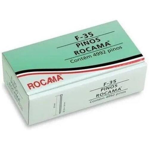 Pinos F-35 Caixa Com 4992 Pinos - Rocama - Os pinos da linha F são ideais para fixação de forros, rodapés, montagem de móveis, estofados, projetos de marcenaria, instalação de pisos de madeira e tudo mais que sua imaginação permitir Equipamentos necessários: - Pinador compatível com pinos do tipo F. Características Gerais do Produto: : 3 meses Marca: Não Informado