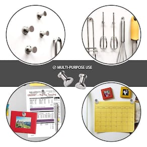 ?DESIGN INTELIGENTE?Design em forma de pino para facilitar o manuseio, cada ímã tem acabamento perfeito em níquel escovado para evitar danos às superfícies, protegendo sua geladeira contra arranhões e superadsorção.