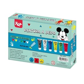 Pintura de dedo mickey com 6 bisnaga cores lavavel dac Categoria: pintura a dedo Cor: estampado Formato: 21,5 cm x 23 cm x 3,5 cm Quantidade: 6 bisnagas por caixinha vermelha, amarela, azul, verde, preta e branca Composição: água/resina/carga mineral/pig/conservante Marca: Não Informado Ean: 7908689915536