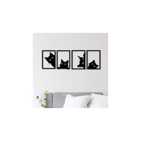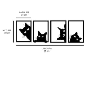 Sua compra inclui: 4 Cuadros con figura de gaticos, para decorar cualquier espacio en tu hogar con los curiosos de la casa.medidas: ancho 23cm de largo 35cmCor negroViene con cinta adhesiva para ser colgada diretamente a la pared. (Se recomienda que la superficie este limpia.Envíos a todo Chile