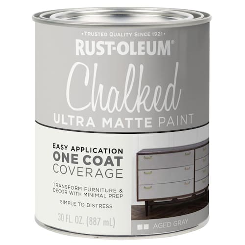 Pintura Rust-Oleum Chalked Gris Envejecido Todo en Uno Ultra Mate | Cobertura en Una Sola Mano | No Requiere Imprimación, Lijado ni Capa Superior | Fácil Limpieza | Fabricado en EE.UU. | 887 ml - FÁCIL DE USAR, INCLUSO PARA PRINCIPIANTES: Ya seas nuevo en el bricolaje o un profesional, Rust-Oleum Chalked hace que pintar sea fácil y divertido. La preparación mínima significa que puedes comenzar tu proyecto con confianza y concentrarte en la creatividad, no en pasos complicados. - IDEAL PARA RENOVAR MUEBLES: Chalked es perfecto para actualizar mesas de noche, mesas de centro, estanterías, gabinetes y más. Se adhiere a madera, metal, cerámica, lienzo, y más, transformando piezas cotidianas en acentos elegantes y personalizados con facilidad. - LIMPIEZA RÁPIDA, SIN COMPLICACIONES: Al terminar tu proyecto, la limpieza es rápida y sencilla solo con agua y jabón. No se necesitan productos especiales ni químicos agresivos—solo un acabado liso y un espacio limpio, listo para tu próxima idea. - SECADO RÁPIDO, COBERTURA EN UNA SOLA CAPA: La mayoría de las superficies requieren sólo una capa y seca al tacto en sólo 30 minutos. Esto significa menos espera y más acción, perfecto para proyectos de fin de semana, actualizaciones de último momento o sesiones creativas espontáneas. - ACABADO MATE SUAVE AL TACTO: Chalked ofrece un acabado ultra mate suave que se siente tan bien como luce. Ya sea que tu estilo sea moderno, minimalista, bohemio o clásico, esta textura aterciopelada aporta un toque refinado, moderno y atemporal a cualquier proyecto.