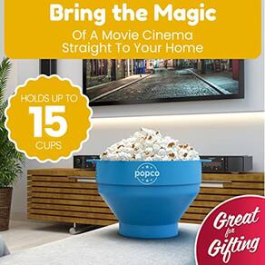 POPCO POPCORN POPPER — DELICIOSA PIPOCA SAUDÁVEL EM MINUTOS POPCO é uma tigela profissional de pipoca de micro-ondas de silicone de qualidade alimentar de alta qualidade com TAMPA e alças convenientes para removê-la facilmente do microondas. A tigela foi projetada exclusivamente para espalhar o calor uniformemente, para que você obtenha uma deliciosa pipoca com muito poucos ou nenhum grão não estourado. PIPOCA SABOROSA EM MINUTOS Basta colocar os grãos de pipoca na tigela, adicionar óleo, sal e aromas de acordo com o seu gosto e colocar no microondas! A tigela grande da POPCO pode conter até 15 xícaras de pipoca para que você possa fazer pipoca crocante e saborosa para toda a sua família e amigos em apenas alguns minutos! LIVRE DE TOXINAS Agora você pode parar de usar sacos de micro-ondas de pipoca potencialmente prejudiciais à saúde! O POPCO é feito de silicone altamente durável, resistente ao calor, sem BPA e sem PVC, para que você possa ter certeza de que é a melhor escolha para você e sua família. Com POPCO você pode usar pouco ou nenhum óleo e obter pipoca saborosa e l! FÁCIL DE ARMAZENAR E LIMPAR O POPCO tem um design dobrável que economiza espaço - altura recolhida de 2,3 polegadas, para armazenamento fácil e compacto. Pode ser facilmente lavado à mão ou na máquina de lavar louça. GARANTIA DE 100% DE SATISFAÇÃO Se por algum motivo você não estiver totalmente satisfeito com nosso produto, você receberá um reembolso total!