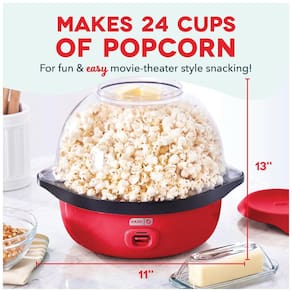 Prepare até 24 xícaras de pipoca fresquinha e deliciosa com o DASH Deluxe SmartStore Stirring Popcorn Maker! Com este inovador aparelho elétrico, você pode fazer pipoca sem precisar aquecer o fogão, basta adicionar os grãos e um pouco de óleo, e pressionar o botão de energia. Perfeito para desfrutar de uma pipoca estilo cinema, a tigela do SmartStore Popcorn Maker permite que você acompanhe a pipoca estourando, servindo também como recipiente de servir. Com a inclusão de um copo medidor, você sempre fará a quantidade certa para amigos e família. A versão Deluxe inclui uma tampa que permite usar a tigela separadamente para armazenamento, e o design SmartStore permite que a tampa e a base se empilhem, ocupando menos espaço em seus armários. Comece a desfrutar de uma deliciosa pipoca caseira imediatamente - receitas inclusas! GOURMET POPCORN: Aproveite até 24 xícaras de pipoca estilo cinema com o DASH SmartStore Stirring Popcorn Maker. Além disso, com uma tampa de armazenamento inclusa, você pode facilmente armazenar e preservar qualquer pipoca restante. ARMAZENAMENTO COMPACTO: A Base do Popcorn Maker se encaixa dentro da Tigela, enquanto a tampa proporciona fechamento para armazenamento rápido, limpo e fácil. MULTIFUNCIONAL: A tampa está equipada com copos medidores integrados para adicionar facilmente a quantidade desejada de grãos, seja 8, 16 ou 24 xícaras, enquanto a tigela permite fácil transporte da cozinha para o sofá. FAÇA DERRETER: A bandeja integrada de derreter manteiga adiciona manteiga enquanto você cozinha, servindo também como válvula de vapor para fazer a melhor pipoca que você já provou. RÁPIDO E FÁCIL: Equipado com uma barra de agitação para garantir que os grãos estourem completamente e para permitir qualquer tamanho de grão. Basta adicionar óleo, grãos e pressionar o botão de energia na sua Máquina de Pipoca Dash Deluxe. 110 V 60 Hz, Potência de 850 W.