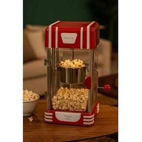 Pipoqueira elétrica Philco Classic Retrô com design charmoso, misturador automático, bandeja para servir, dosadores de milho e óleo, abertura frontal e iluminação interna.Luz indicadora de funcionamento