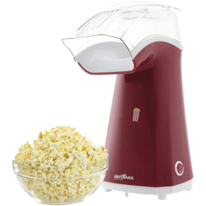 Pipoqueira elétrica com 1200W de potência, 5 ciclos de preparo sem necessidade de resfriamento, utiliza ar quente dispensando o uso de óleo, bocal direcionador, dosador para pipoca e manteiga, porta fio e pés antiderrapantes.Luz indicadora de funcionamento