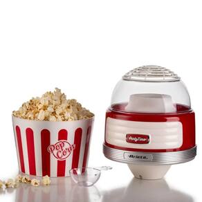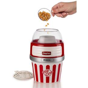Pipoqueira elétrica com sistema de cozimento a ar quente, transforma até 60g de milho em pipocas leves e crocantes em menos de 2 minutos, sem precisar de óleo ou gordura. Tigela removível para servir. Estilo retrô.Luz indicadora de funcionamento
