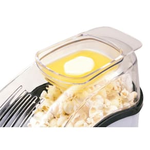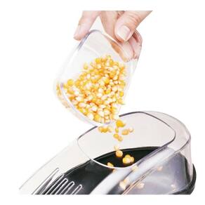 Prepara 100 gramas de pipoca em 3,5 minutos, não utiliza óleo, possui bocal direcionador, dosador para pipoca e manteiga, chave liga/desliga, pés antiderrapantes e porta fio.Luz indicadora de funcionamento