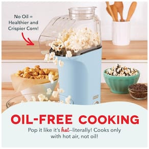 Faça pipocas frescas e quentinhas em minutos com a pipoqueira elétrica DASH. Sem a necessidade de óleo, a câmara de aquecimento de alta capacidade desta pipoqueira produz até 16 copos de deliciosa pipoca apenas com ar quente. Mais saudável do que usar o fogão ou micro-ondas, a pipoqueira DASH é a forma natural de desfrutar da sua pipoca e, com 1400 watts de potência, não deixa nenhum milho por estourar. Perfeita para criar um petisco único para festas ou simplesmente aproveitar uma noite de filmes relaxante, esta máquina de estourar pipocas de ar quente faz tudo isso. Utilize a bandeja para derreter manteiga e obter um sabor deliciosamente amanteigado sem aditivos ou conservantes artificiais. O canal de explosão e a bandeja de manteiga podem ir à máquina de lavar louça para uma limpeza fácil. RÁPIDO e FÁCIL: Basta medir e adicionar os grãos de milho na câmara de aquecimento de alta capacidade, em seguida, pressionar o botão de início com um toque, para pipocas quentes e frescas em minutos. É tão fácil que até as crianças podem fazer. MAIS SAUDÁVEL: A Máquina de Pipoca DASH utiliza ar quente, sem óleo ou conservantes adicionados de um saco de micro-ondas, para estourar 16 copos de pipoca quente e fresca de forma rápida e eficiente. Perfeita para festas, reuniões em grupo ou uma noite tranquila a dois. MULTIFUNCIONAL: O copo dosador incluso também funciona como bandeja para derreter manteiga na parte superior da máquina, basta adicionar uma colher de manteiga enquanto as pipocas estouram e despeje quando estiver derretida para ter pipocas estilo cinema. COMPACTA: A Máquina de Pipoca DASH é essencial para seu primeiro apartamento, cozinha pequena, vida em dormitório universitário ou viagens de trailer/ motorhome. Além disso, seu design elegante e opções de cores modernas vão combinar com qualquer espaço na cozinha, fazendo um presente perfeito. INCLUI: A exclusiva Máquina de Pipoca DASH de 16 copos da Amazon inclui um copo dosador para grãos de milho e derreter manteiga, livro de receitas.