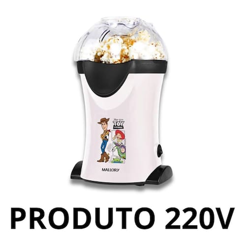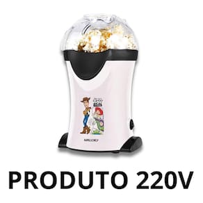 Pipoqueira elétrica com sistema de ar quente, licenciada Disney Toy Story. Não utiliza óleo, resultando em pipoca mais leve. Possui copo medidor 2 em 1 que também pode ser usado para derreter manteiga e bocal direcionador para a pipoca cair direto na tigela.Preparação