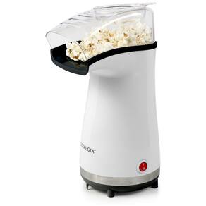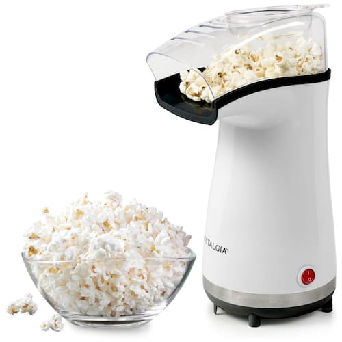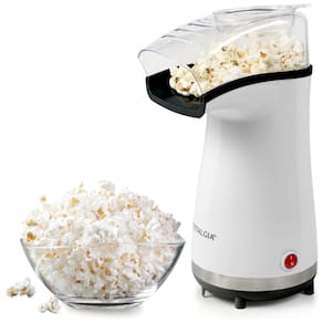 Pipoqueira elétrica que utiliza ar quente, faz até 16 xícaras de pipoca por vez, possui tampa medidora e design que minimiza grãos não estourados. Inclui câmara de estouro com fluxo de ar giratório e rampa de pipoca.Luz indicadora de funcionamento