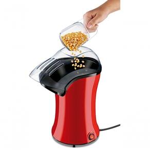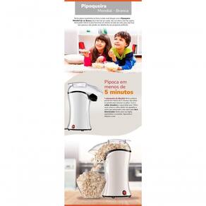Pipoqueira elétrica Mondial 1200W, prepara pipoca sem óleo com ar quente, colher dosadora, bocal direcionador, base antiderrapante e guarda-fio.Luz indicadora de funcionamento