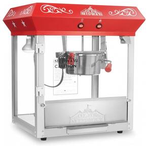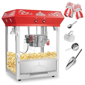 Pipoqueira elétrica retrô com acessórios de aço inoxidável, copo medidor, colher de sopa, colher de pipoca e saleiro. Design com estilo antigo e recursos modernos, construção em aço inoxidável resistente, motor silencioso e pintura premium.Luz indicadora de funcionamento