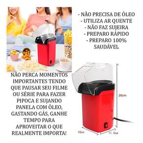 Pipoqueira Elétrica Sem Oleo Com Ar Quente 1200W - 110V Maquina Pipoqueira Elétrica 110V Sem OleoPipoqueira Elétrica 110v Tenha sua pipoca em mãos, como em um passe de mágica Faça a melhor pipoca do mundo SEM óleo. Ela utiliza o mecanismo de ar quente que faz com que os milhos estourarem em poucos minutos após ligar a máquina no botão POWER Essa pipoqueira é um luxo de comodidade, pratica e sem usar óleo, poderá fazer sua pipoca rápida e saudável devido ao sistema de ar quente. Nada de queimar pipoca em panelas, tenha sua pipoqueira elétrica para assistir aquela serie ou filme prediletos. CARACTERÍSTICAS: Praticidade Não usa oleo Rapidez ESPECIFICAÇÕES . Voltagem: 110V . Potência: 1200w . Dimensão: Altura 27cm x Largura 12cm ITENS INCLUSOS 01 X Pipoqueira Elétrica 110v
