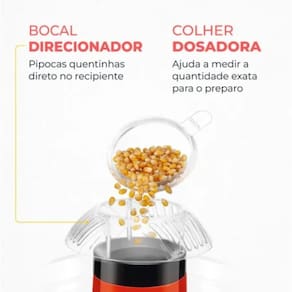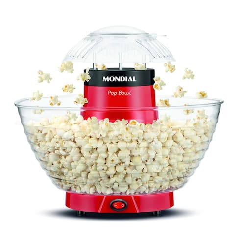 Pipoqueira elétrica Mondial Red, 700W, prepara pipoca sem óleo, com tigela removível e tampa dosadora para manteiga.Luz indicadora de funcionamento