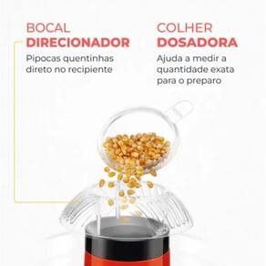 Pipoqueira elétrica Mondial, 700W, prepara pipoca sem óleo com ar quente, possui tigela removível e dosadora para manteiga.Luz indicadora de funcionamento