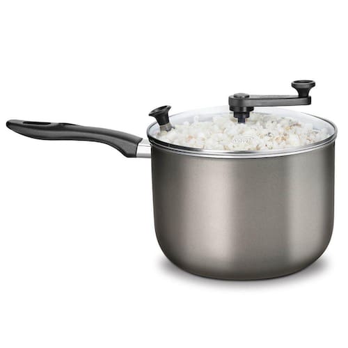 Espessura: 2,0 mm, proporciona cozimento uniforme e rápido. 5 camadas de antiaderente, não deixa os resíduos grudarem na panela facilitando a limpeza da pipoqueira. Haste de metal. Furos de saída de vapor. (Evita queimar a mão no uso) Cabo de nylon com apoio na tampa. Fundo com frisos antiderrapante, maior segurança.
