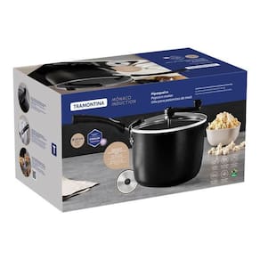 Prepare pipocas crocantes sem complicação com a Pipoqueira Tramontina Mônaco. Com 22 cm de diâmetro e 5,4 litros de capacidade, ela garante um preparo uniforme graças ao corpo de alumínio e ao revestimento interno e externo em antiaderente Starflon Premium, que evita que os grãos grudem. A tampa de vidro temperado com borda de aço inox permite acompanhar o processo sem precisar abrir, enquanto o manípulo de nylon e a trava antigiro oferecem mais . com todos os tipos de fogões, incluindo indução, essa pipoqueira suporta até 150 g de milho, resultando na quantidade ideal para aproveitar cada momento.