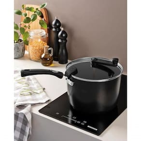 - Tampa de alumínio com trava antigiro: não gira durante o preparo;