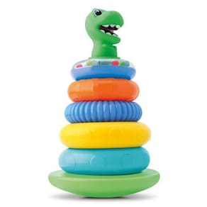 Pirâmide de argolas de empilhar com Chocalho - Dinossauro - Divertoys PIRÂMIDE DE ARGOLAS – DINO SÃO 5 ARGOLAS PARA O BEBÊ BRINCAR E EMPILHAR ATÉ FORMAR UMA PIRÂMIDE A PRIMEIRA ARGOLA É TRANSPARENTE E VEM COM BOLINHAS FAZENDO ASSIM BARULHINHOS QUANDO O BEBÊ MOVIMENTA A PIRÂMIDE TAMBÉM É MÓVEL QUE FAZ MOVIMENTOS PARA FRENTE E PARA TRÁS SEM CAIR QUANDO O BEBÊ EMPURRAR PRODUTO TODO MACIO E ATÓXICO TAMANHO DO PRODUTO = 15X25 CM TAMANHO DA EMBALAGEM = 20X18X30 CM PRODUTO DESTINADO A BEBÊS A PARTIR DE 6 MESES