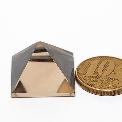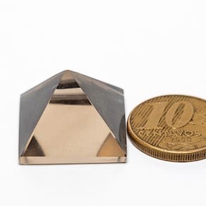 Pirâmide de Cristal Fumê Extra Qualidade (20 mm) A Pirâmide de Cristal Fumê é uma peça artesanal de alta qualidade, lapidada manualmente e baseada nas proporções da famosa Pirâmide de Quéops. Feita de quartzo fumê extra, a pedra possui uma coloração esfumaçada e um brilho vítreo, sendo ideal para decoração ou para quem aprecia peças naturais com design simbólico. Características do Produto: