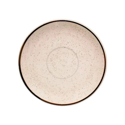 É produzido em porcelana de altíssima qualidade na cor bege claro com bordas e detalhes marrons, que traz uma sensação de leveza a sua mesa.