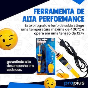 Feito com materiais de alta qualidade como policarbonato, PVC, aço inoxidável e cobre, este pirógrafo e ferro de solda 2 em 1 é durável e confiável. Seu potencial máximo de temperatura é de 400C e opera em uma tensão de 127v, garantindo alto desempenho em cada uso.