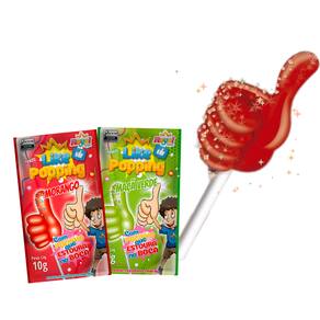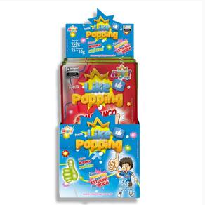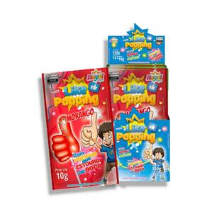 Display contendo 15 unidade de pirulito e pó que explode na boca Royal Toys. Nos sabores Morango e maça verde.