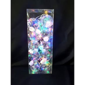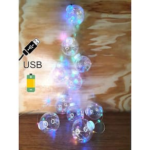 Jpgps de Luzes com 10 Bolas transparentes, em cada bola contendo um fio de fada de Led, podendo ser ligado a pilha ou em USB.
