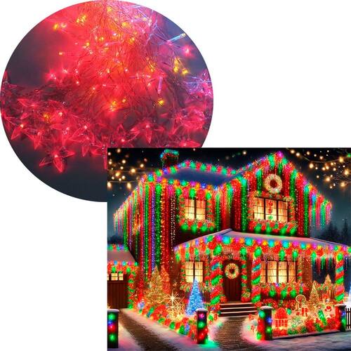 1 Pisca Cascata 405 LEDs Com Estrelas Colorida De 10 Metros;