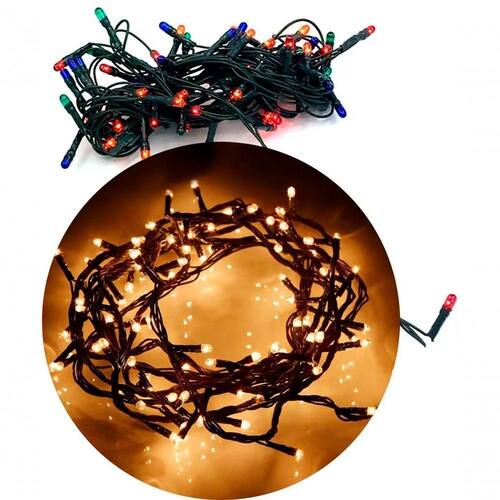 1 ;Cordão 100 Micro-Lâmpadas LED ;Branco Quente ;8 ;Funções 3,6 Metros 220v;