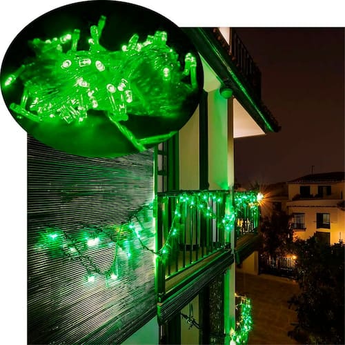 Com 100 lâmpadas LED em tom Verde, este cordão de 10 metros é perfeito para deixar qualquer ambiente mais bonito e festivo