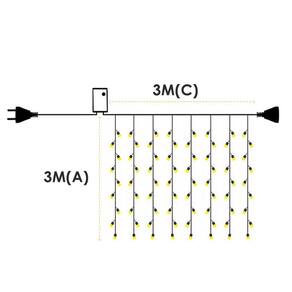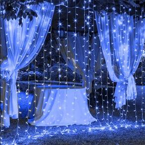 Especificações técnicas: Modelo: pisca de led cortina 320l Luz do led: azul Formato das lâmpadas: gota Alimentação de energia: tomada Voltagem: 110v 8 modos: misto, vagalume, ondas, desenergizam-te, corredor, desfoque lentamente, piscando e acesso o tempo todo Dimensões: 3m comprimento x 3m altura Peso: 560g