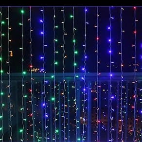 Especificações técnicas: Modelo: pisca de led cortina 320l Luz do led: colorido Formato das lâmpadas: gota Alimentação de energia: tomada Voltagem: 110v 8 modos: misto, vagalume, ondas, desenergizam-te, corredor, desfoque lentamente, piscando e acesso o tempo todo Dimensões: 3m comprimento x 3m altura Peso: 560g