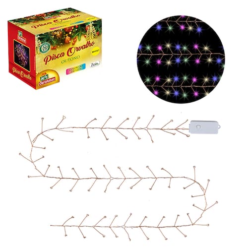 PISCA FIO COBRE 200 LEDS COLORIDO RGB 3M BIVOLT