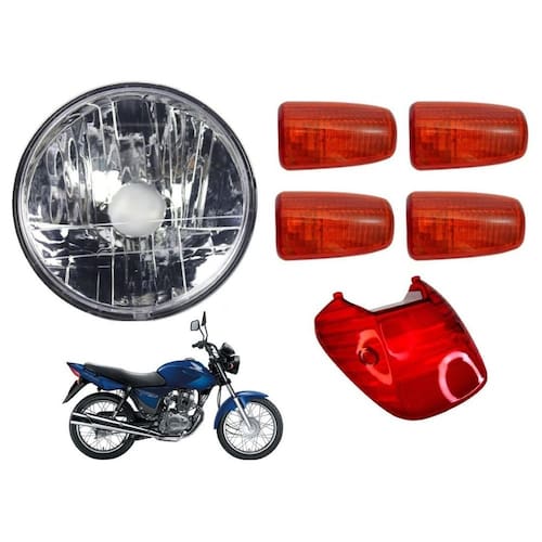 itens inclusos: 01 bloco optico farol - 01 lente lanterna - 04 lente pisca compativel com: cg sport titan 150 para os anos: 2004 - 2005 - 2006 - 2007 - 2008 marca fabricante produto: dvsc cor lente lanterna: vermelha cor lente pisca: laranja obs: somente as lentes - não acompanha lampadas parafusos disponibilidade imediata
