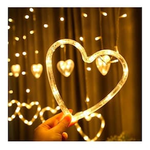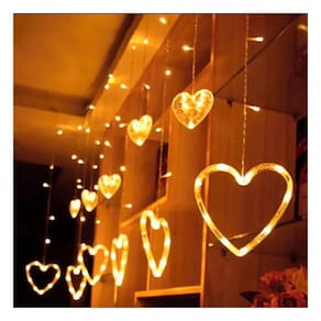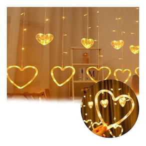 Contém: 1 Pisca Pisca Cascata 138 Leds 2.5 Metros Amarelo Corações Com Controle 8 Funções Casa Decoração Enfeites Natal 11663