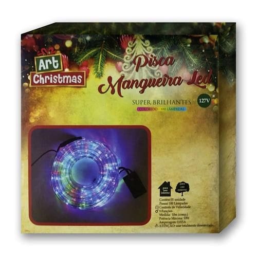 -pisca pisca 100 lâmpadas coloridas -formato de mangueira -corpo em plástico flexível -tamanho: 10 metros -voltagem: 127V Ean: 7899658405069