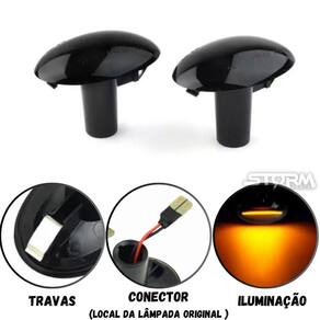 Especificações: - Condição: novo e com garantia. - Tipo de lâmpada: luz pisca lateral led. - Cor da luz led: âmbar. - Potência: 5w. - Tensão: 12v. - Material: caixa ABS.