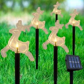 O conjunto de luzes de Natal apresenta 5 luzes de renas e está equipado com um painel solar. Coloque o painel solar em uma área bem iluminada, e após 4-6 horas de carregamento de luz solar direta, estas luzes de renas podem iluminar você por 8 a 12 horas à noite. Com um interruptor automático, as luzes podem ligar automaticamente ao anoitecer e desligar ao amanhecer.