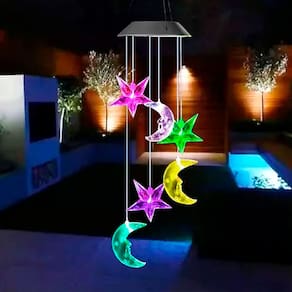 Pisca Solar Giratório Estrelas Luas De Natal LEDs Colorido -