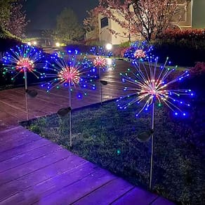 Pisca Solar Natal Jardim Fogos Artifício Luzes LEDs Colorido -