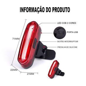 Características Técnicas:-Led de 120 lúmens de brilho nas cores Vermelho e Azul;-Bateria de polímero de lítio 6500 mAH;-Visibilidade lateral de 240º;-Até 15 horas de duração; 6 funções:Fixo alto vermelhoFixo baixo vermelhoFixo alto azulFixo alto pinkPisca lento vermelhoPisca rápido todas as cores